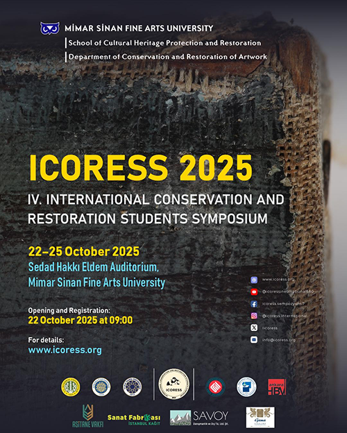 ICORESS stands for International Conservation and Restoration Students Symposium in English and Uluslararası Koruma (Konservasyon) ve Onarım (Restorasyon) Öğrencileri Sempozyumu in Turkish.